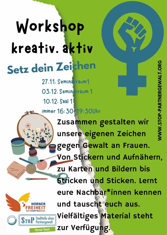 Wir gestalten eigenen Merch – von Stickern und Leinwänden bis zu Plakaten, Patches und mehr! Material ist vorhanden, zusätzlich gern eigene Textilien wie T-Shirts oder Taschen mitbringen.